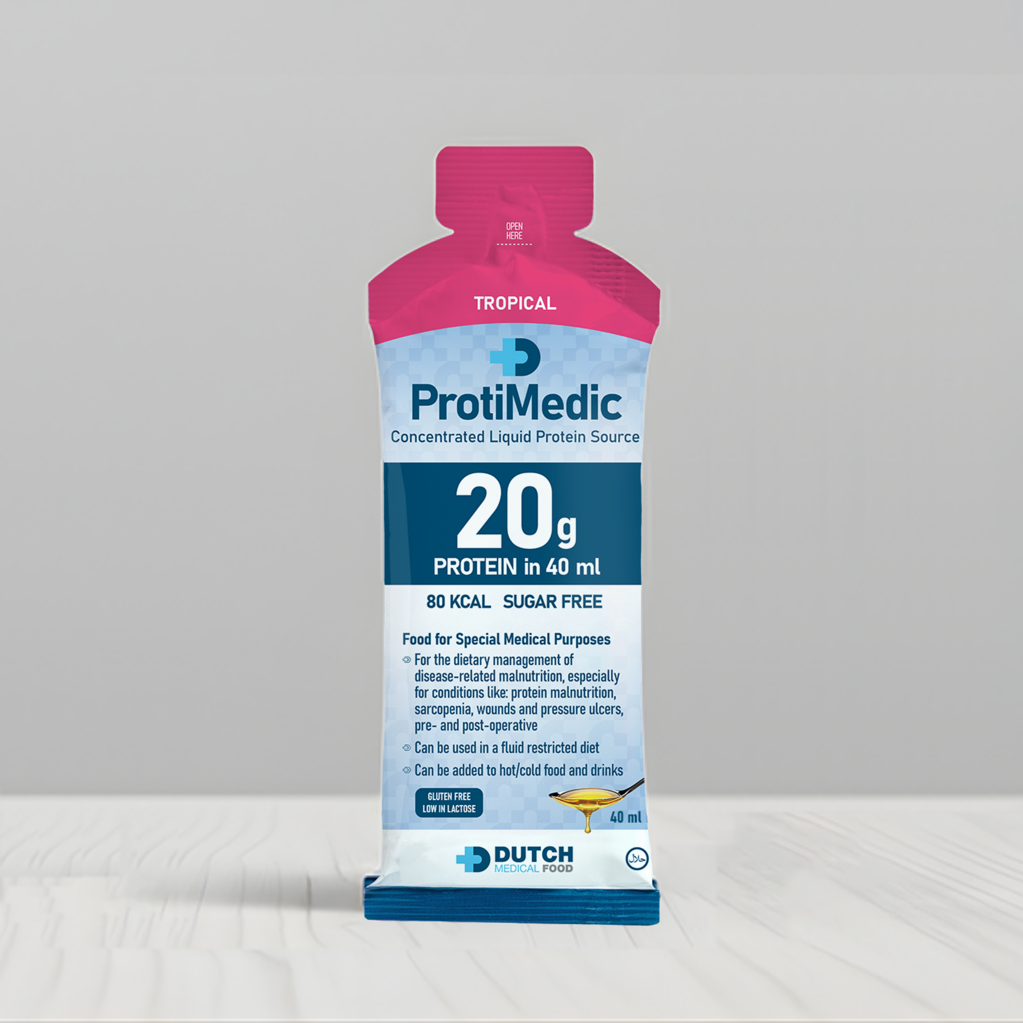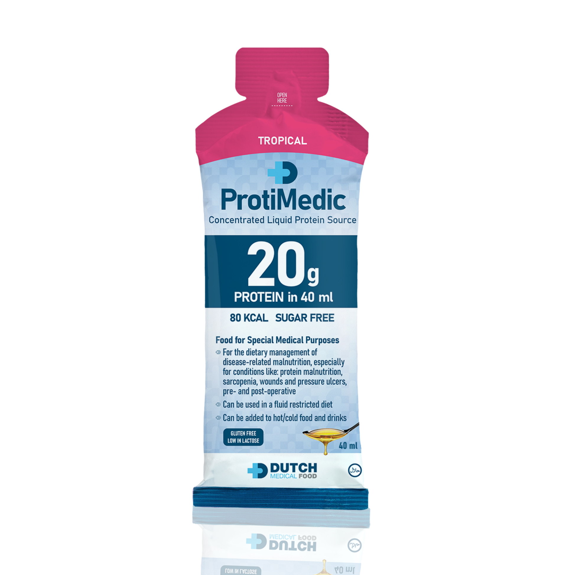 استمتع بنكهة مميزة مع بروتي ميديك تروبيكال! هذه الجرعة البروتينية النابضة بالحياة تُقدم ٢٠ غرامًا من البروتين القوي في ٤٠ مل فقط، خالية تمامًا من السكر والدهون. مُعززة بالكولاجين، مُصممة لتعزيز طاقتك، ودعم صحة عضلاتك، والحفاظ على شعورك بالانتعاش والتغذية. حسّن روتينك اليومي مع مُنتج بروتين لذيذ، عملي، وفعال.